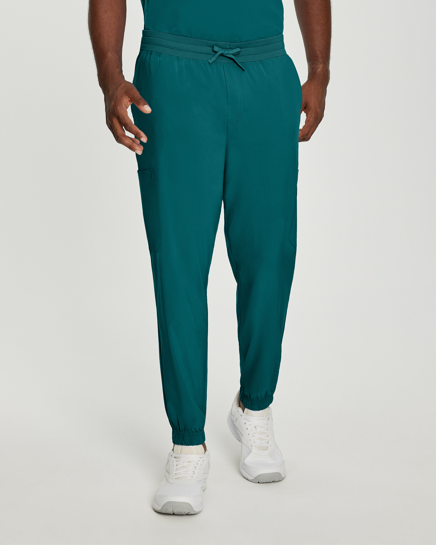 Meet your new favorite activewear-inspired scrubs. The FIT men's banded-bottom jogger scrub pants feature a 4-way super stretch for maximum comfort and flexibility. This quick-dry fabric pulls moisture to the surface so your skin feels dry through your most active shifts. With a mock fly front and elastic ankle cuffs, our joggers have a mid-rise triple-elastic mesh waist with a drawstring for a secure fit.
